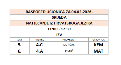 by Snježana Novaković | velj 1, 2026 | Oglasna ploča, Raspored sati