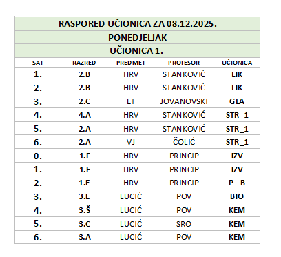 by Snježana Novaković | pro 7, 2025 | Oglasna ploča, Raspored sati