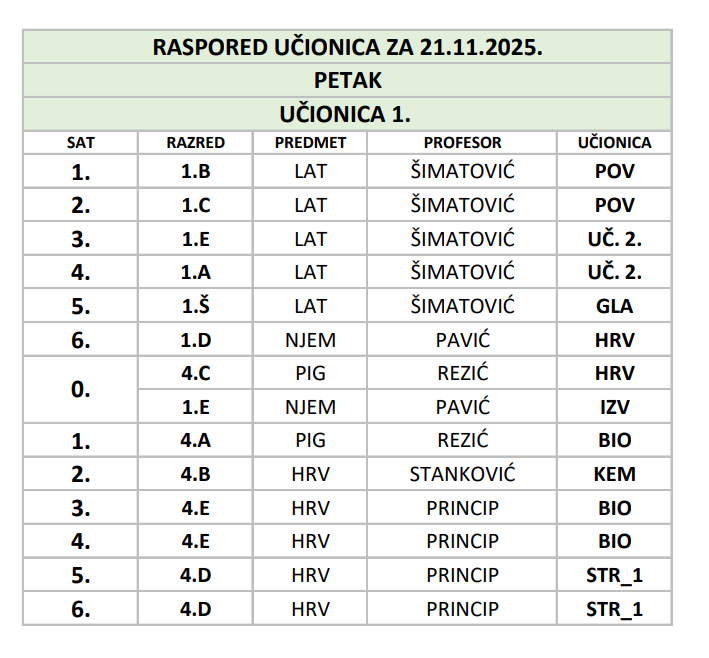 by Snježana Novaković | stu 20, 2025 | Oglasna ploča, Raspored sati