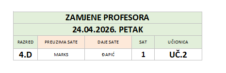 by Snježana Novaković | tra 13, 2026 | Oglasna ploča, Raspored sati